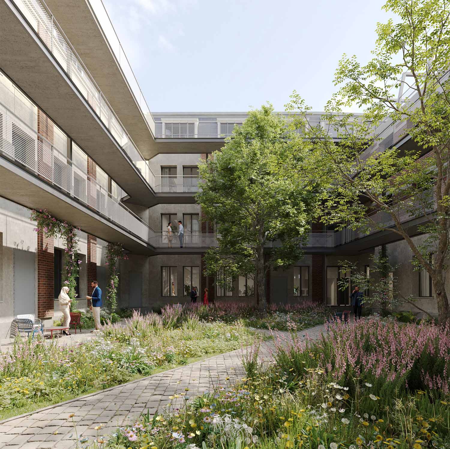 Completely physically separated from the office development, Atenor SA is developing 20 appartments to rent out, on the plot at the back of Highline, along rue Potagère. The flats feature spacious terraces and a communal garden. This development is not part of the Highline offices.