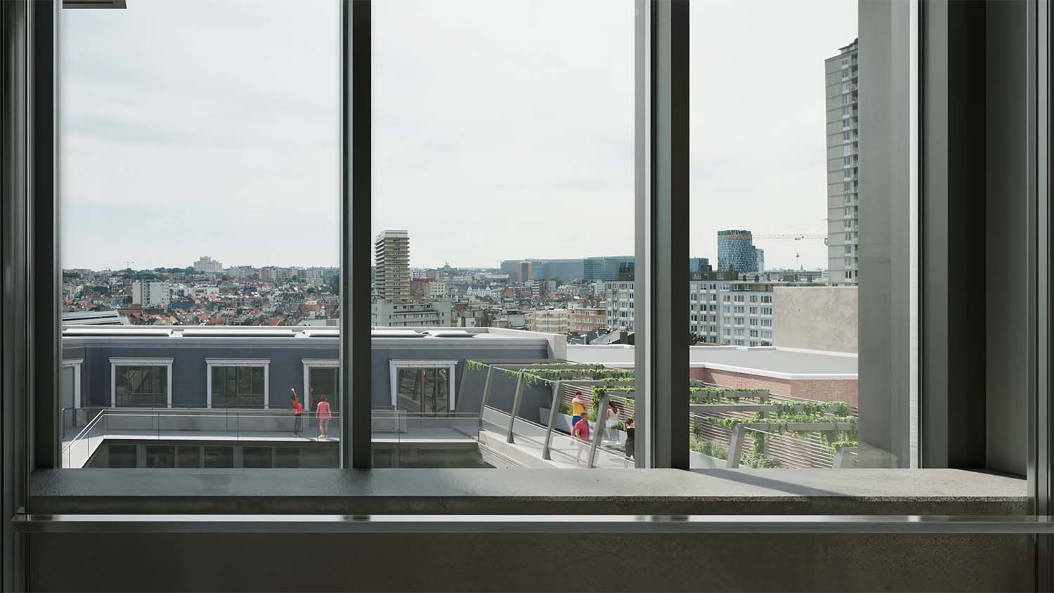 The main building comes with hanging terraces on the 3rd, 5th, 7th floor. The 8th floor features 2 large terraces with breathtaking views of the Brussels highline.